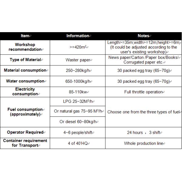 | Model | Capacity | Forming machine | Drying system | Workshop spcae | Rated power |
